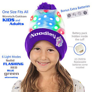 LED Light Up Glow Unicorn Beanie Hat with Pom Gifts for Girls Kids and Boys are perfect for glow in the dark birthday gifts, fun stocking stuffers, cool Halloween costume accessories, Christmas presents, New Years Eve, party favors and even Thanksgiving gifts for kids. Keep kids safe  and visible trick or treating or even just walking at night. Grab some of the hottest novelty gifts for kids today! Customer satisfaction is our goal, please contact us for any reason.